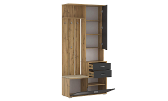 Заказала эту прихожую так как она идеально подошла под мой интерьер. По стоимости вышло недорого. Хорошее качество, вместительные ящики. Я довольна покупкой.